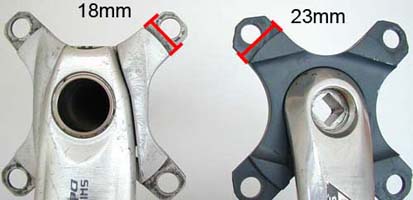 mittlere und große Kettenblatt. Es gibt hier 18 und 23mm. Technisch ist es egal,