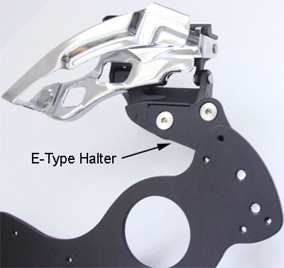 ← Die Darstellung links zeigt einen E-Type Umwerfer. Dieser wird nicht mit einer Schelle sondern