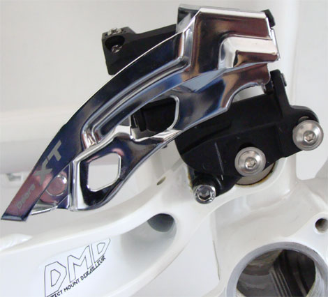Die rechte Darstellung zeigt einen echten "DirectMount" Umwerfer. Dieser wird mit nur eine Schraube an einer speziell